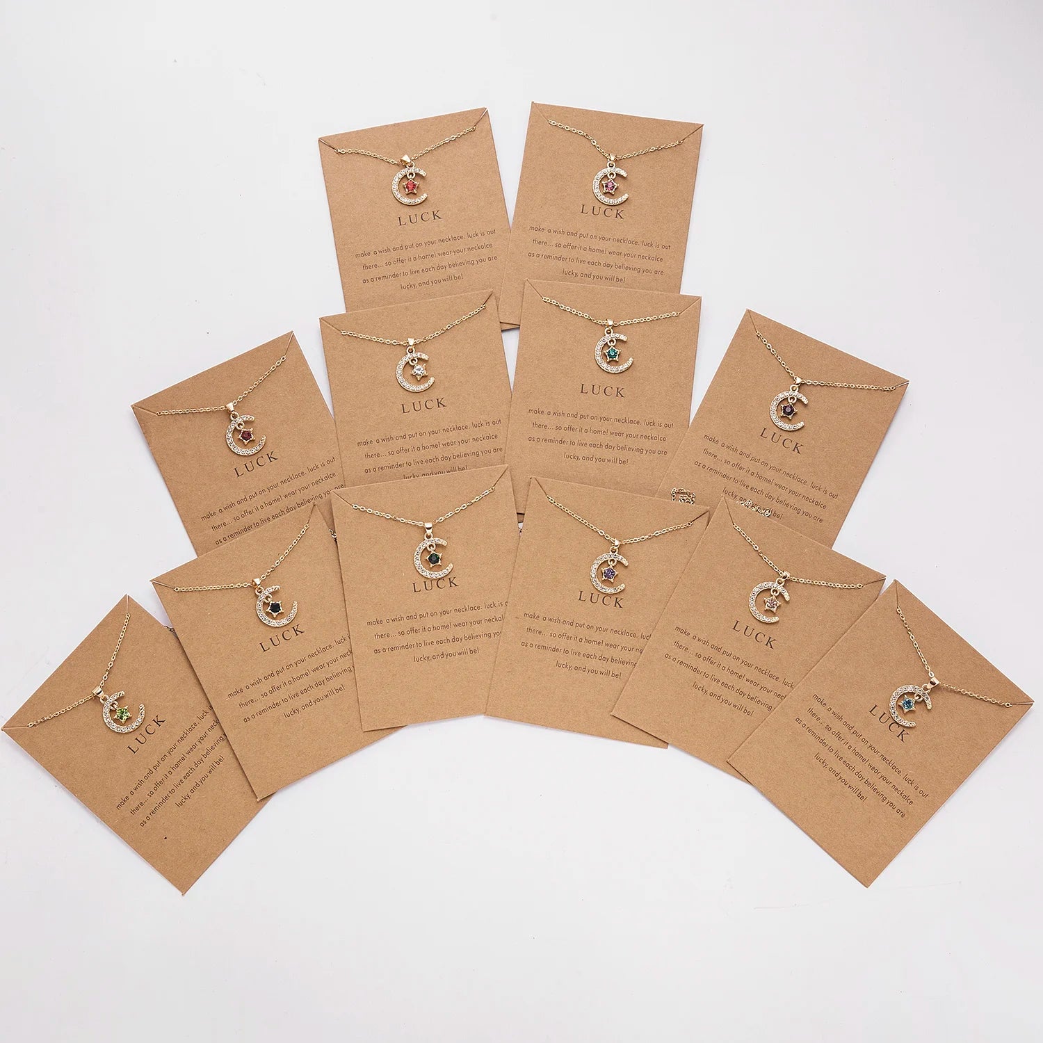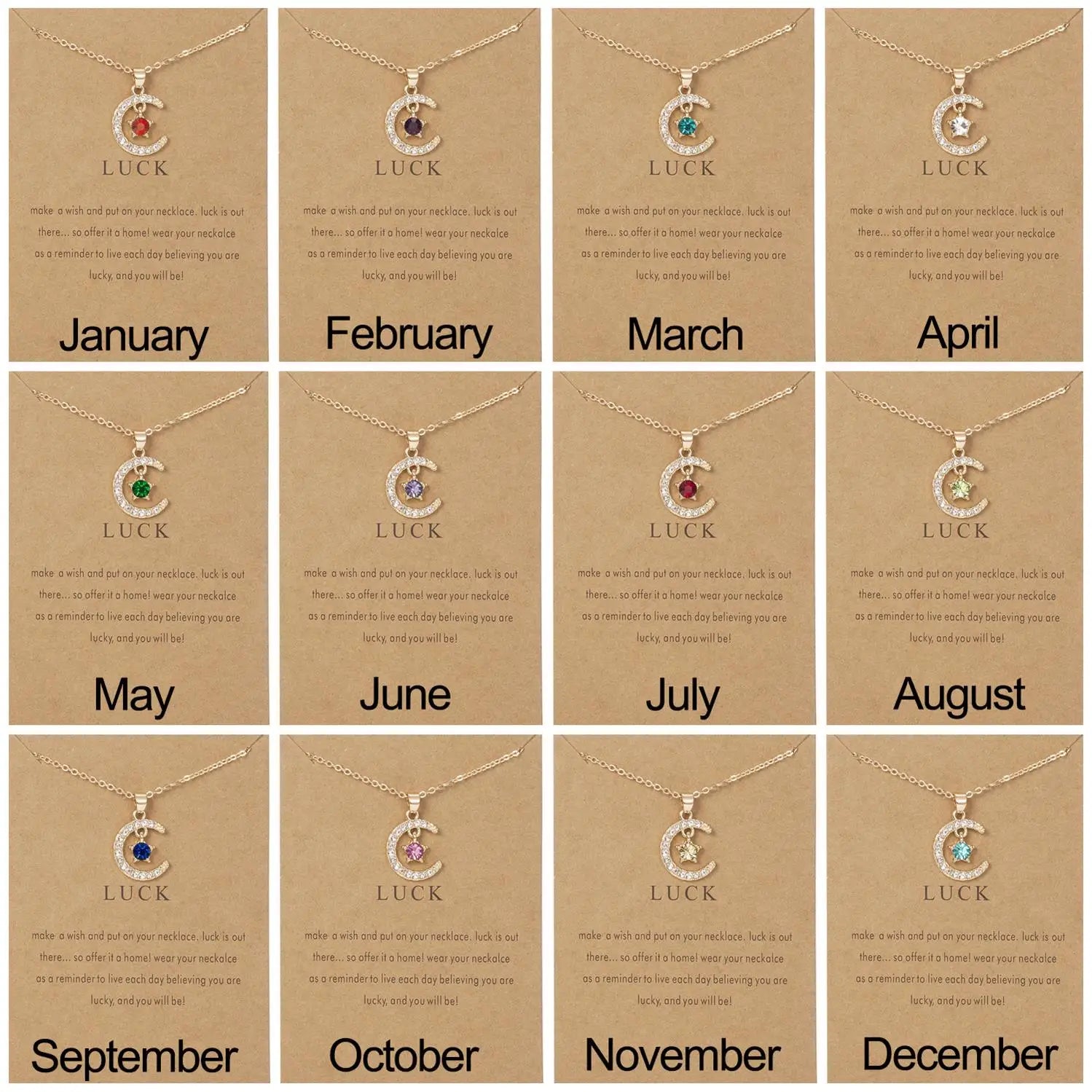 Birthstone Moon Star Crystal Pendant Necklace