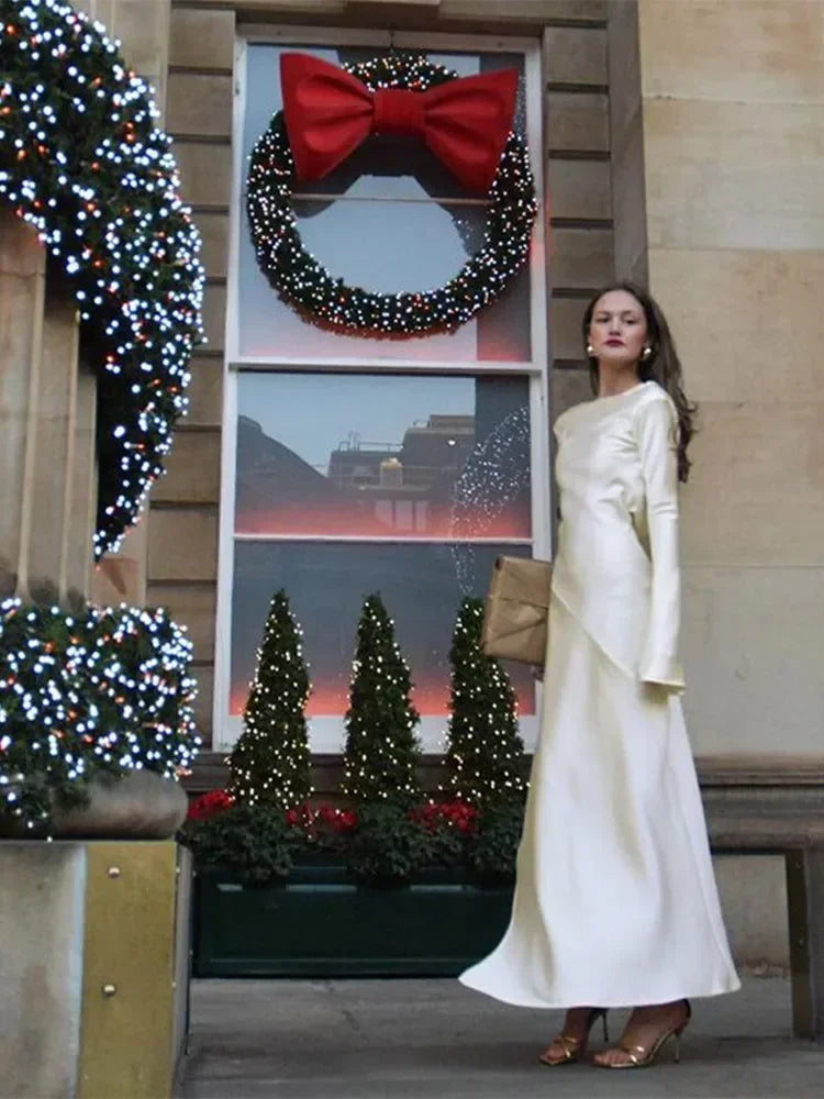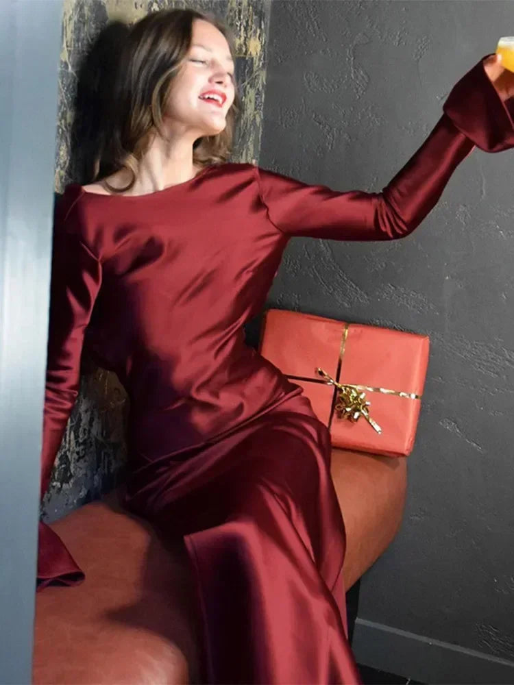 Evening Dress Backless Flare Sleeve Solid Maxi