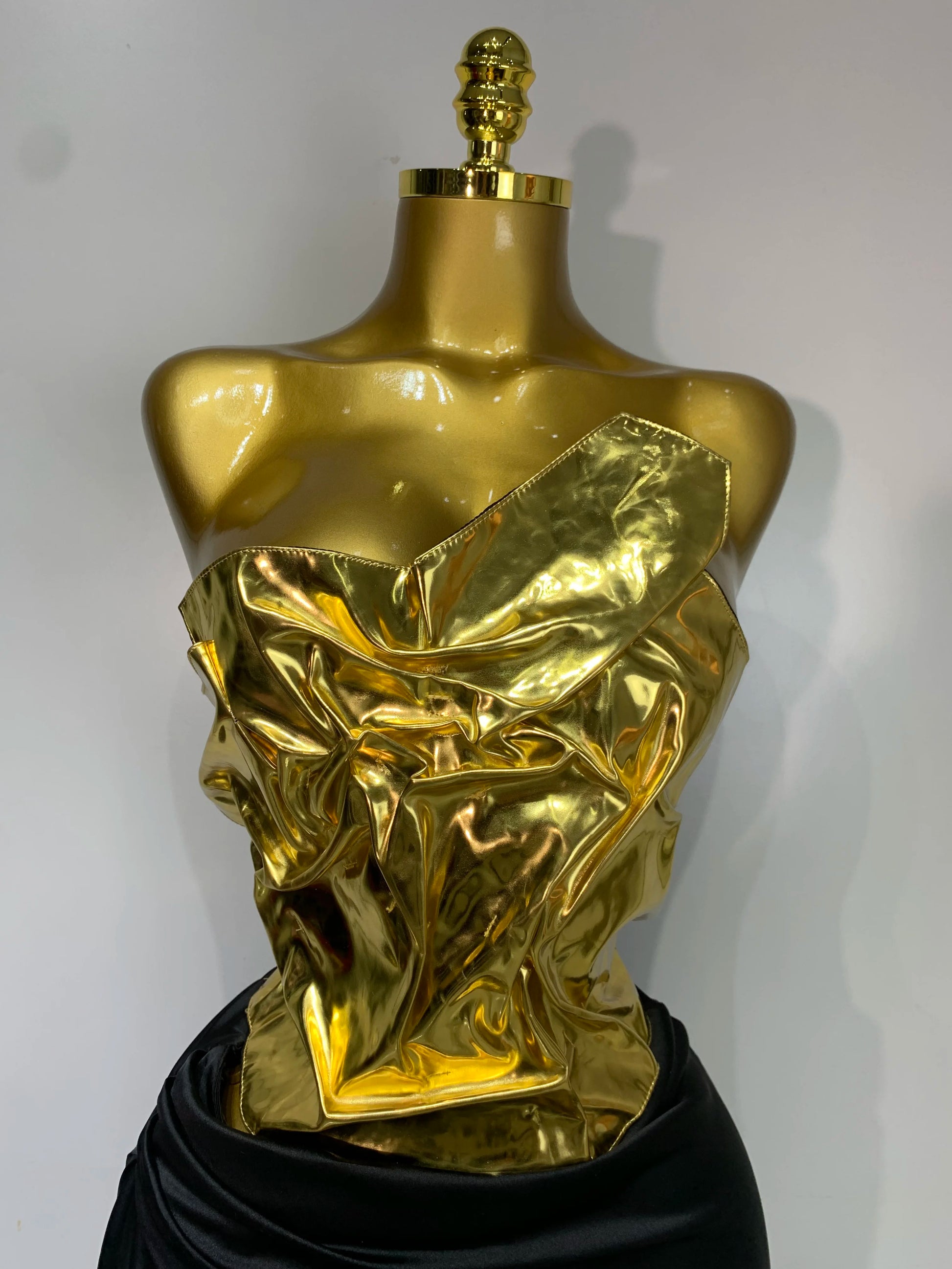Gold Color Sexy Laced-up Tops Elegant Dress