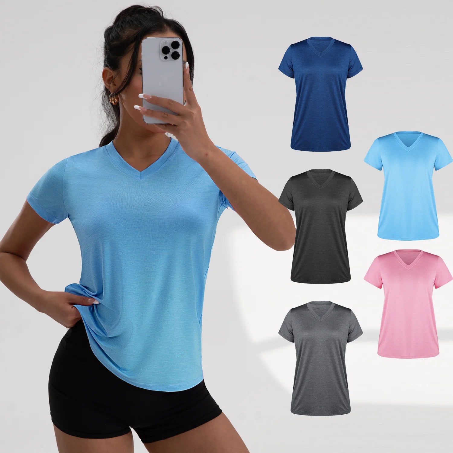 V Neck T Shirt Short Sleeve Breathable Stretchy
